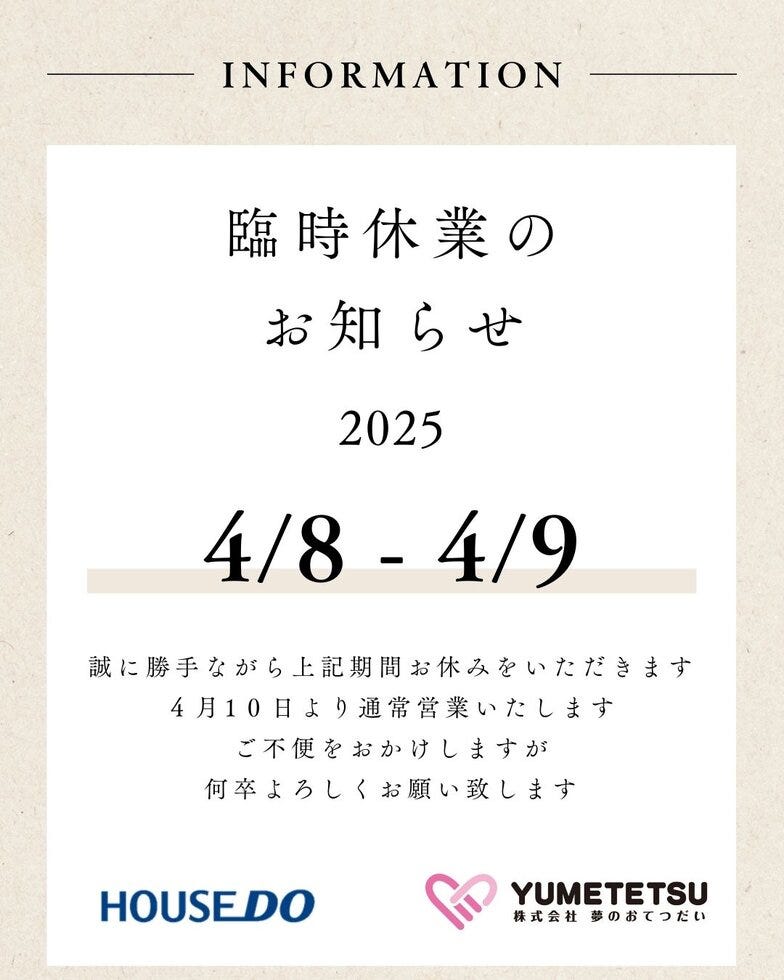 2025年4月10日より通常営業いたします。