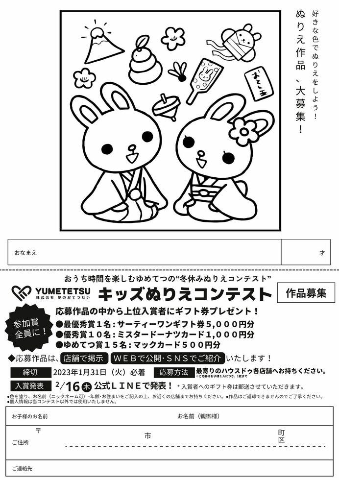 【ぬりえ募集期間】12/13(火)~1/31(火)