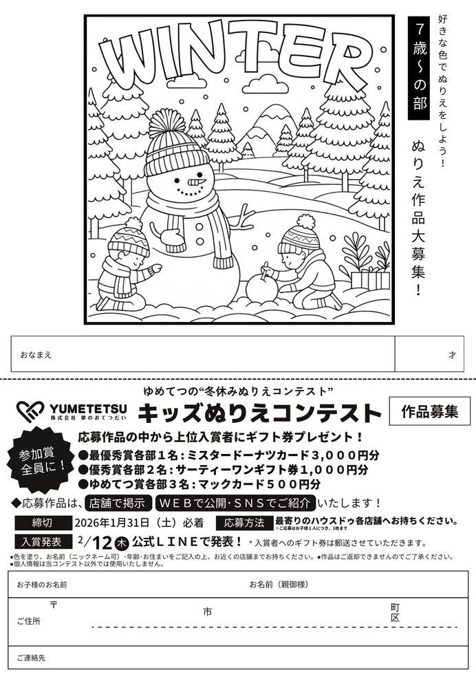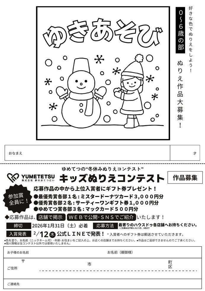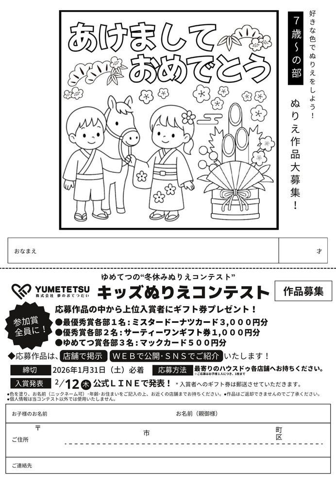 ゆめてつプレゼンツ☆キッズぬりえコンテスト